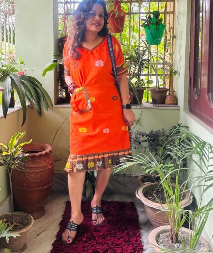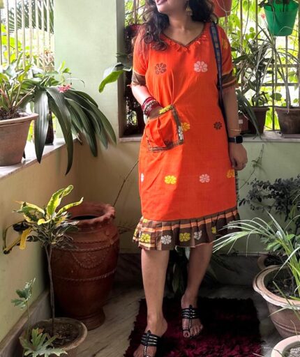Khadi Cotton Short Dress with Gamcha Shrug