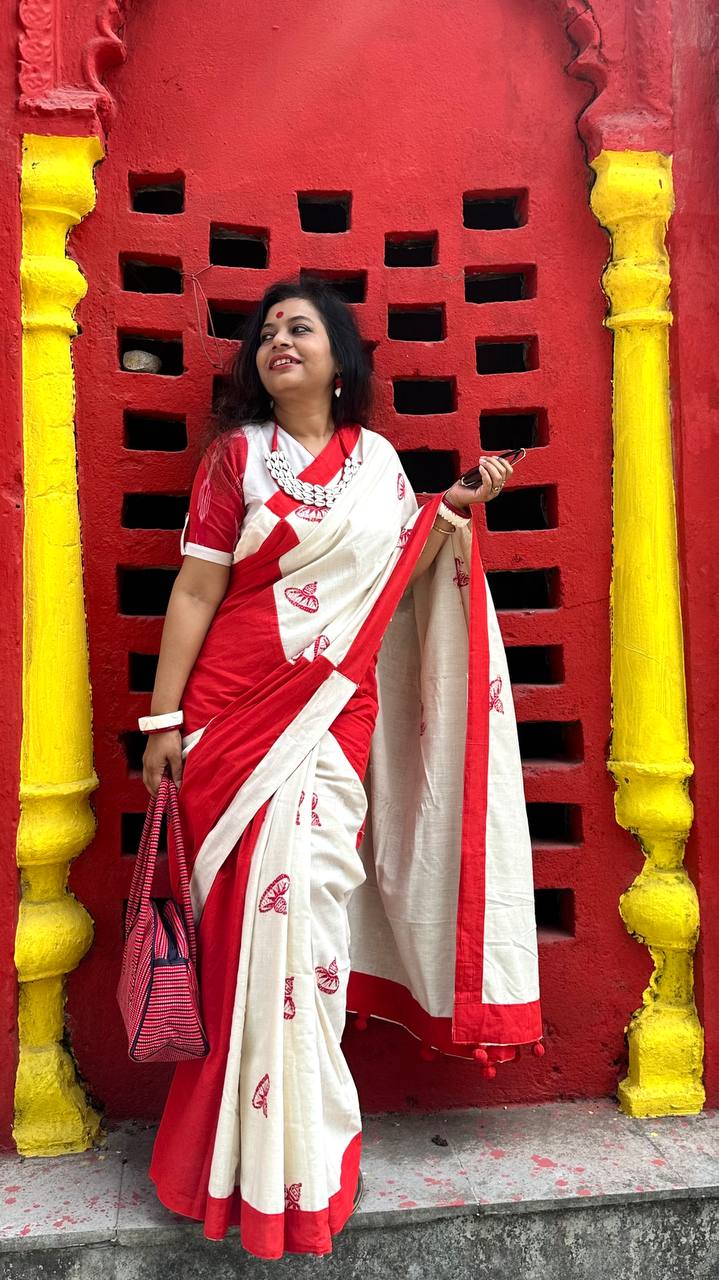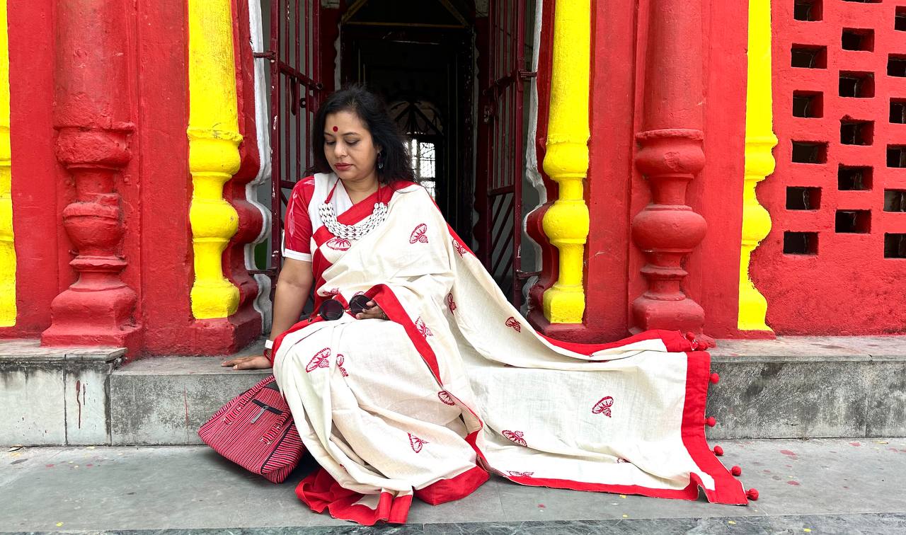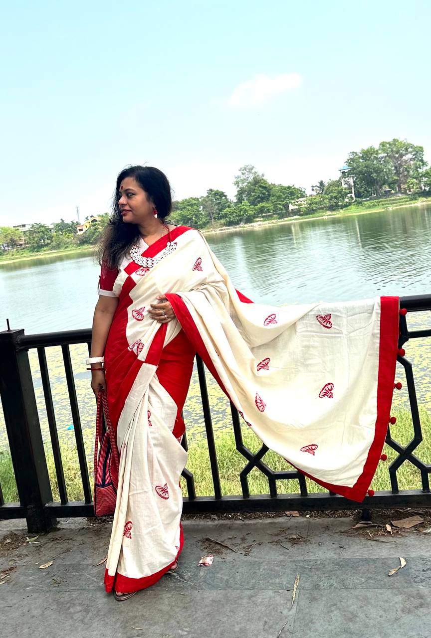 Treasure Box Khadi and Eri Saree: Saree created with hand-spun Eri cotton and Khadi cotton. Eri cotton is created by women weavers of Assam.